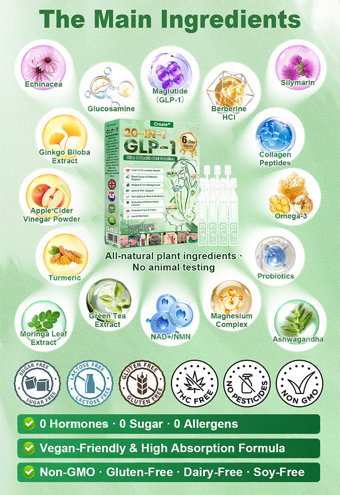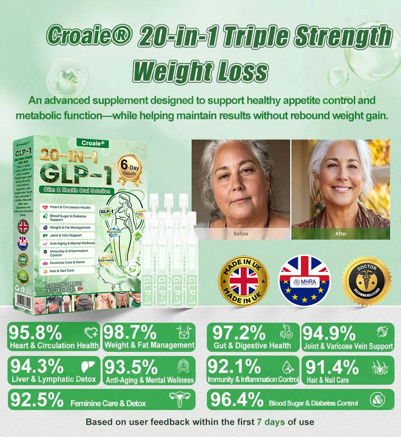 Developed over 20 years by over 30 experts, CroaieĀ® ššš£-š šš-š¢š§-š šš„š¢š¦ & šššš„šš” šš«šš„ ššØš„š®šš¢šØš§ capsules are suitable for all adults and body types. They combine Tirzepatide (GLP-1) with natural extracts to help balance blood sugar, suppress appetite, and burn fat, enabling gradual and healthy weight loss. This product is rich in collagen peptides, which help maintain firmness during weight loss. It also contains a variety of potent ingredients that boost immunity, improve digestion, support intestinal and feminine health, increase energy, relieve fatigue, and restore youthful vitality. Produced in a GMP-certified facility that meets UK and EU standards, this product offers a safe, scientific, and needle-free solution for effective weight management and long-term health.